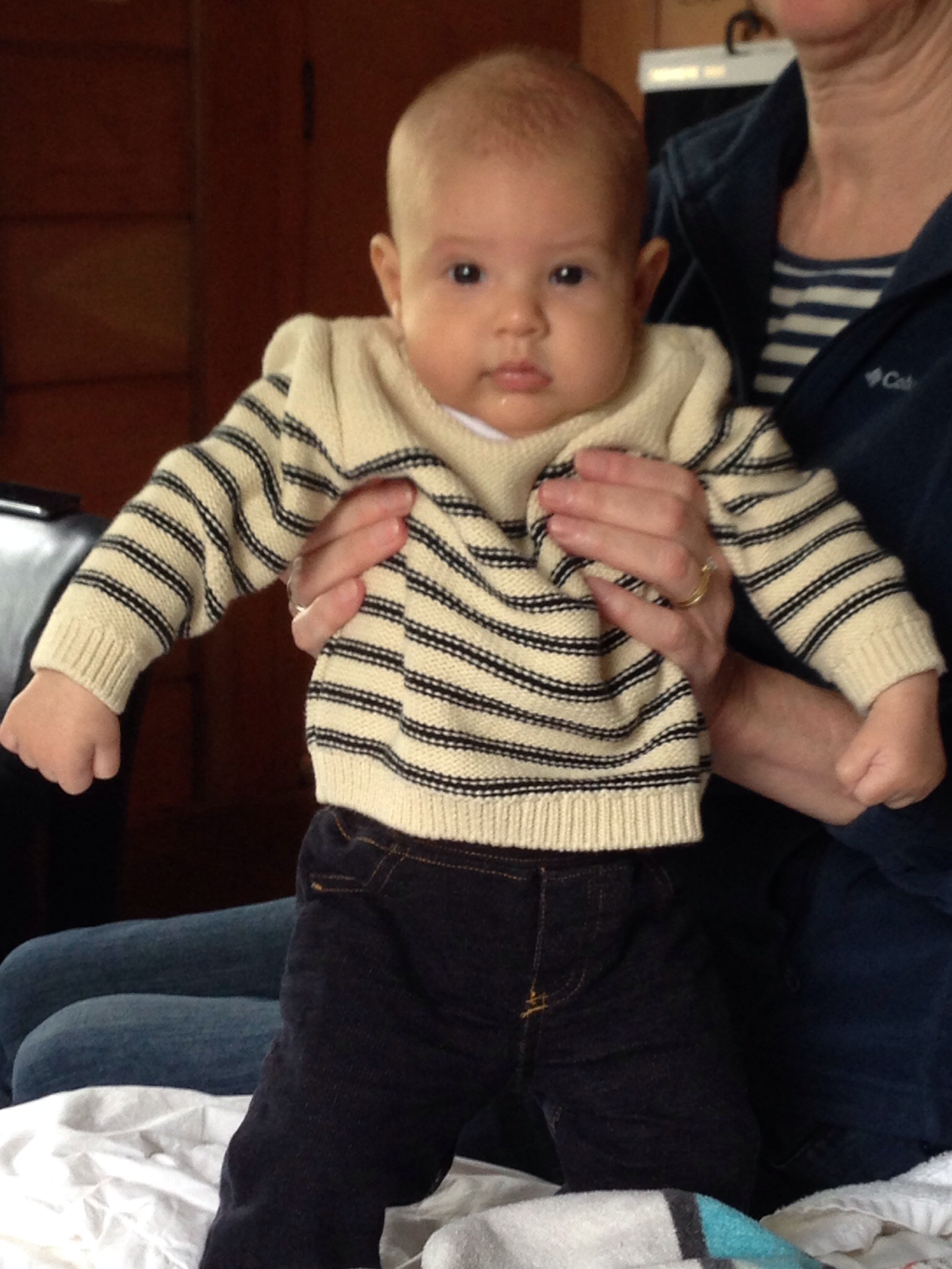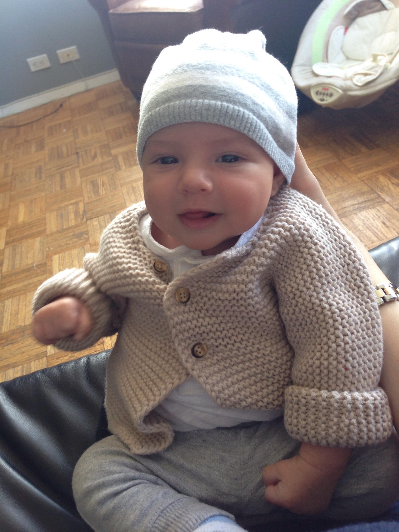 Two months old now, Arthur is smiling and cooing and interacting with everyone. He is also sleeping 10 hours each night and has happy parents 🙂 He is holding his head up, and is practicing using his legs to stand – he feels strong already! He still loves to cuddle and has a habit of dozing off in peoples’ arms.